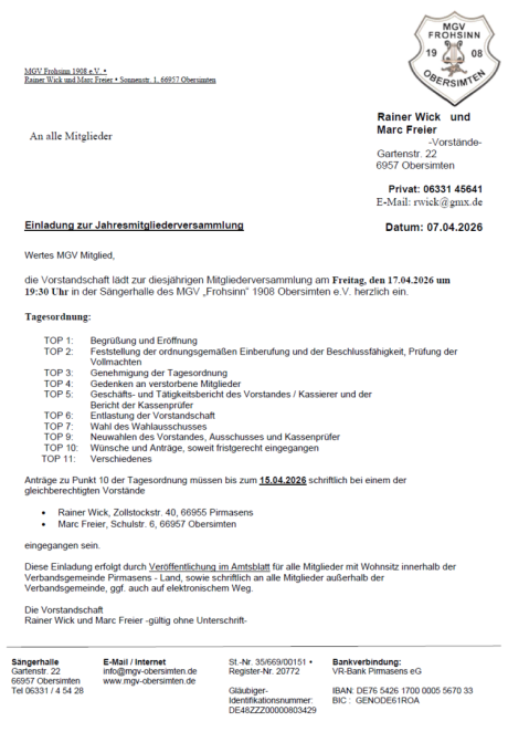 MGV Frohsinn 1908 Obersimten e.V.